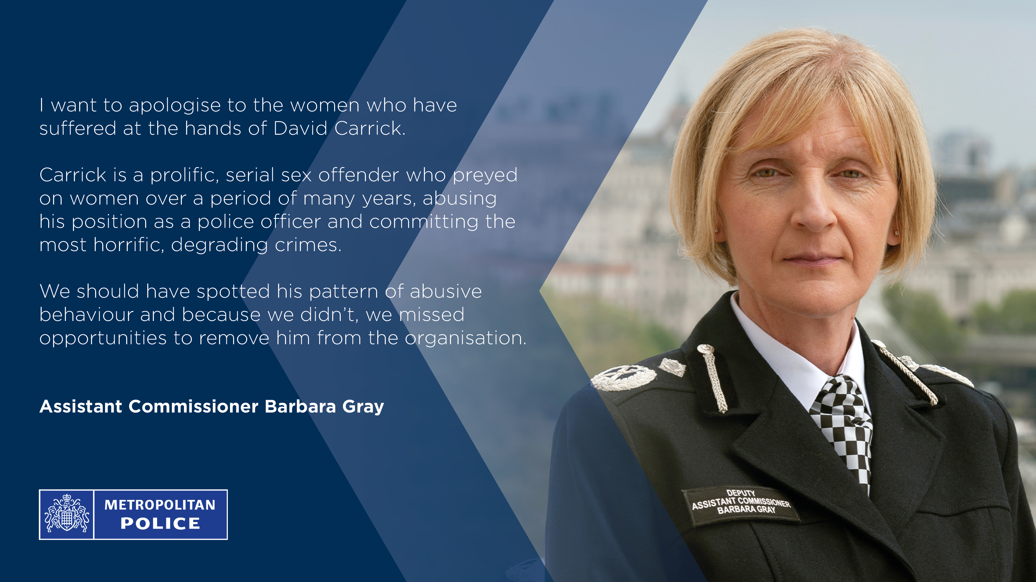Web David Carrick lured his victims by flashing his warrant card and reassuring them that they could trust him and they were safe because he was a police officer. Web PC David Carrick 46 of Stevenage Hertfordshire is a serving police officer based within the Mets Parliamentary and Diplomatic Protection Command. Web David Carrick 48 pleaded guilty to 49 offenses including 20 counts of rape and charges that included assault attempted rape and false imprisonment.